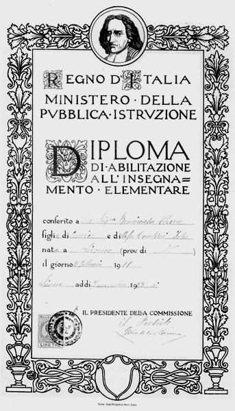 TAV. 20 Diploma della “MAESTRA” Clara Benincasa