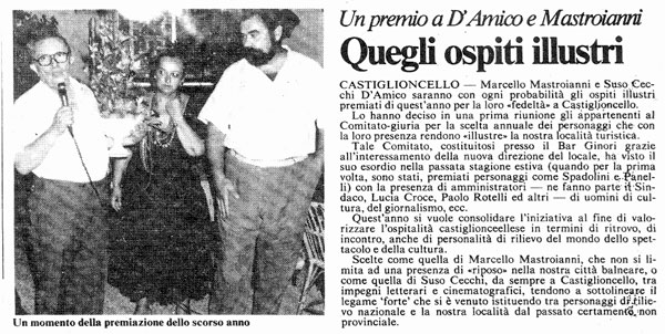 CASTIGLIONCELLO PREMIA GLI OSPITI PIU' PRESTIGIOSI |