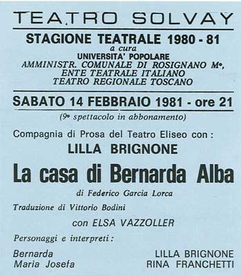 Locandina de "La casa di Bernarda Alba" del 1981
